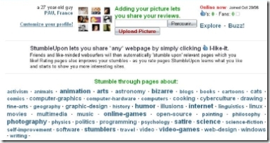 C’est très tendance, c’est du partage de connaissance mais c’est aussi très pointu. La première idée c’est le boutton Stumble! en cliquant dessu vous vous retrouvez sur un site de manière aléatoire, un site qui correspond ? un de vos centre d’interet. C’est une façon très sympa de surfer sans faire d’effort.