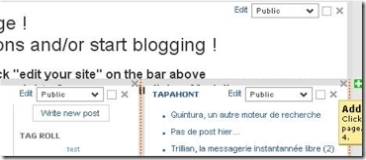 – La homepage privé : L? , on est dans le netvibes/webwag like, elle s’administre comme la page publique, mais vous permet d’y stocker des données privées (logique) comme vos mails, des notes…