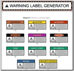 Le deuxième,Warning label generator, plus simple mais moins sobres, vous propose de créer des panneaux d’avertissements. Très marrant et déclinable ? tous les instants de la vie, ça sent la blague au bureau.(via le blog d’Eric)
