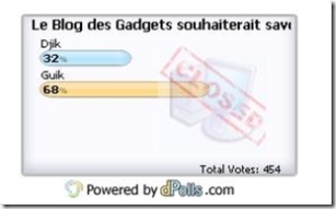 Le blog gadget de Generationmp3 avait lançé un sondage donc le resultat est clos et a quand reçu 130 votes :
