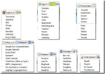 C’est quoi donc ce truc ? Très simple, une barre d’outil qui vient se ranger dans le haut de votre navigateur et qui vous permet d’acceder ? une selection d’outils web2.0.