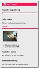 J’ai fait le test avec une vidéo de 10 Mo en WMV (windows) vers du flv (flash) , du .mov (quicktime) et du DivX et en 1 mins le fichier était prêt. Si vous avez une machine un peu ancienne, pas besoin d’une nouvelle pour faire de la compréssion vidéo (faut quand même une bonne connexion web).