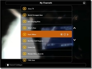 A gauche le menu My Venice pour changer de chaine, et l? il y a déja du lourd, Paris Hilton… mais aussi des trucs bien comme Green Day et les red Hot