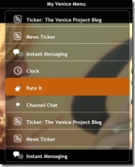 A droite My Venice permet d’activer les widgets : chat avec les autres personnes qui regardent la même chaine, client Jabber/Gtalk, horloge… Tous les widgets s’affichent en sur-impression sur la vidéo en cours