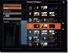 Pour revenir sur les menus, il y a un menu de config assez riche qui permet de parametrer l’appli mais aussi de choisir dans un catalogue des bouquets de chaîne. On y trouve entre autre la Warner.
