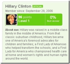 Comme c’est très ? la mode, elle propose de discuter avec son électorat pour enrichir son programme. Pour faire cela, elle a décidé d’utiliser le très populaire Yahoo!answers.