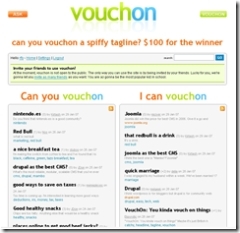 Enfin, il inaugure aussi des « concours », en ce moment on peut gagner 100$ en trouvant un slogan (tagline) ? VouchOn.