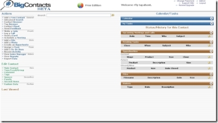 L’originalité du site, en dehors d’être un des rares ? offrir une gestion des contacts en ligne et l’ajout de quelques touches de web2.0 comme un nuage de tags pour retrouver contacts/taches…