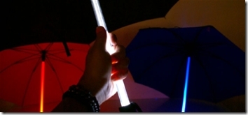 Ce coup ci c’est Ubergizmo qui nous sort le parapluie sabre-laser qui pour 41$ vous permettra de rester sec et l’air bien naze. (site du produit avec pleins de photos)