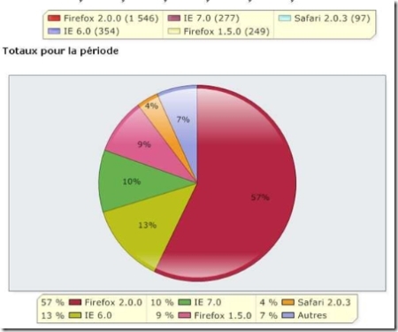 Côté navigateur, y a pas ? dire, les amateurs de web et de gadgets qui passent ici utilisent FireFox (ps : dans la catégorie « autres » on trouve Opera mais aussi des tas de versions de FF, IE et Safari)