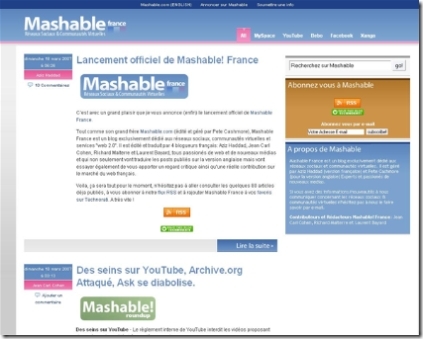 Tout comme son grand frère Mashable.com (édité et géré par Pete Cashmore), Mashable France est un blog exclusivement dédié aux réseaux sociaux, communautés virtuelles et services “web 2.0?.