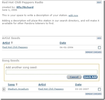 Depuis ce soir, il est possible d’éditer les stations que l’on a créé en ajoutant ou en suprimant manuellement des chansons.