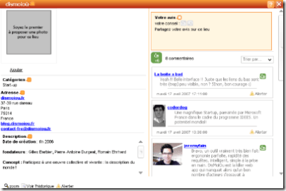 dismoioù est un mashup ? base de googlemaps qui propose ? une la communauté de ses utilisateurs de quadriller leur ville/région/pays en y ajoutant leurs bonnes adresses.
