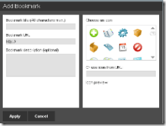 Le site se présente sous la forme d’un bureau virtuel avec un design classe et sobre. En 2 clics vous pouvez ajouter un bookmark avec nom/url/descriptif/icone.
