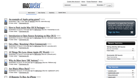 Cela faisait longtemps que je n’avais pas vu passer un clône de Digg, et voici que ma route croise MacMeter.