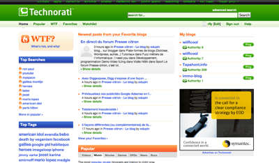 Technorati est un site américain, où 45 personnes essaient de tracker près de 80 millions de blogs. La mise ? jour est surtout cosmétique même si Dave Silfry assure le contraire sur le blog corporate.