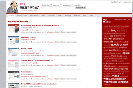 Intéressant! Moi non plus je n’utilise pas encore de social bookmarking. Ou plutôt je n’utilie que Google bookmark qui stagne terriblement! Donc testons donc Mitser Wong! PS: ok pour le tutoiement… très désagréable.