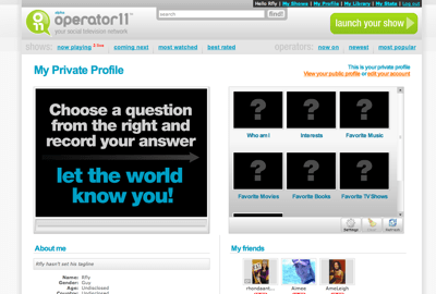 En fait le concept est simple, plutôt que de faire une page graphique ou texte comme un MySpace ou un blog, ici Operator11 vous propose de faire tout en vidéo. Vous pouvez uploader ou enregistrer directement depuis votre webcam sur le site.
