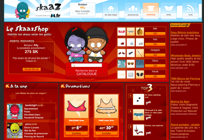 Reste, le dernier point, la bonne idée, c’est le shop qui propose d’habiller son Skaaz contre de la monnaie virtuelle qui peut être gagné dans le réseau en réalisant des actions mais aussi par SMS, audiotel et CB.
