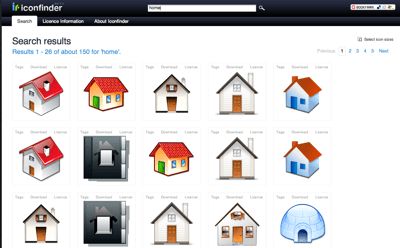 iconfinder est un moteur de recherche d’icônes, un style sobre et efficace qui peut en quelques secondes vous permettre de trouver de jolis icônes pour améliorer votre ordinateur ou votre blog/site. Il me semble cependant que la base de données est un peu légère.