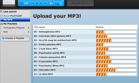 En effet, il aussi possible de stocker ses mp3 sur le site pour les avoir disponibles tout le temps et partout, par la même occasion ils deviennent accessible ? la communauté et enrichissent le catalogue.
