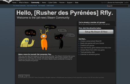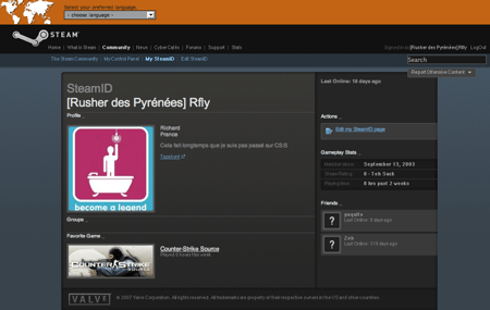 Depuis quelques jours Valve propose SteamCommunity, un vrai site internet avec une notion sociale dedans. Pour être franc, c’est léger mais efficace, une page profil et un zone groupe où chacun peut créer ou rejoindre des communautés.