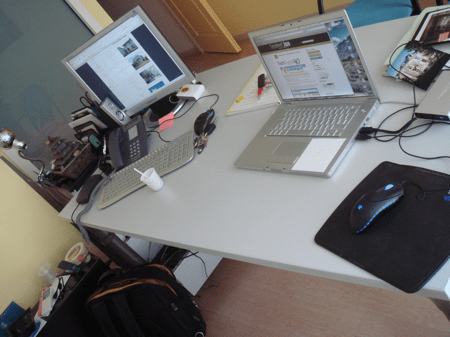 Pour répondre simplement depuis l’arrivée du MacBook, j’ai viré le bureau ? la maison, donc je blogue un peu partout pour peu qu’il y est du confort.