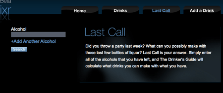 Le site ne s’arrête pas l? car il vous propose de vous sauvez en utilisant « last call » un moteur encore plus fort qui permet ? l’instar de certains sites de cuisine de trouver quels cocktails vous pouvez faire avec ce que vous avez dans les placards.