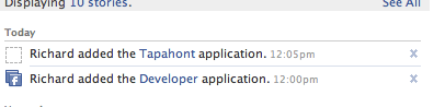 Environ 2 mins après vous disposez de votre appli, dans mon cas j’ai seulement widgetisé Tapahont donc l’intérêt est très relatif mais pour ceux qui dispose déj? d’application fonctionnant ? partir de html/flash le site permet de les rendre compatible facebook sans avoir ? avaler toute la doc sur l’API.