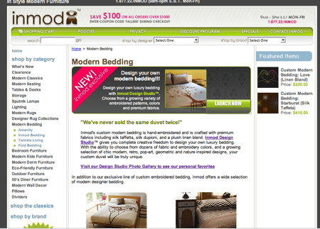 Depuis quelques jours le site expérimente un nouveau concept, laisser les clients personnaliser leur couette, alors ça peut paraitre con comme ça, mais franchement quand on connait l’engouement d’un certain type de clientèle pour les modèles uniques c’est certainement un bon coup.
