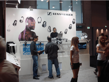 Stand Sennheiser, vendeur de casques, dj et hotesse 🙂