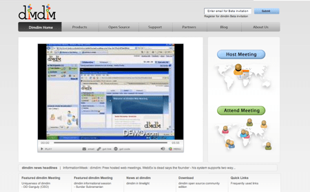 Au départ, DimDim est un logiciel OpenSource qui demande ? être installé et configuré, la société a présenté lors du DEMO une conférence prestigieuse aux Etats Unis la version web-based. Le but étant de faciliter l’utilisation du produit et de permettre son déploiement encore plus rapidement.