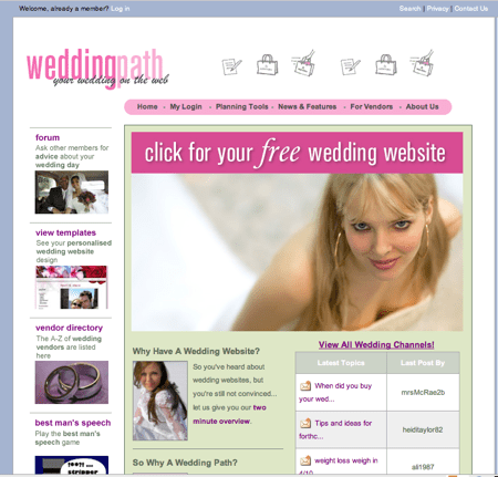 Weddingpath est un site anglais qui a très bien compris le jour où quelqu’un a expliqué le concept de « niche ».