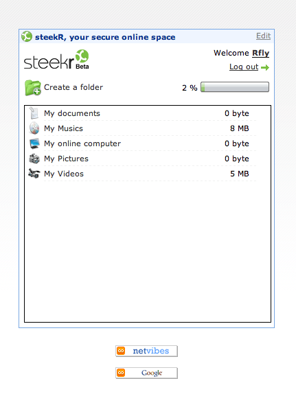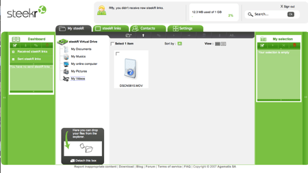 En fait quand je parlais que 1go me suffisait, c’est que je me sert de steekr comme un espace de stockage de transition… C’est-? -dire que plutôt que de ramener des fichier de mon taf ? mon domicile sur une clé USB ou autre DD externe, je me sert de Steekr, voili voilou ! 🙂 C’est plus rapide… Franchement, en imaginant un espace de 500go, voir même illimité, vous iriez y déposer l’intégralité de vos photos, vidéos, fichiers importants…etc…sans sauvegarde sur vos DD persos ??? Par exemple, j’ai beau avoir un compte Pro Flickr, toutes les photos que j’uploade restent également sur mon dur. Manque de confiance dans la technologie moi ? nooon!