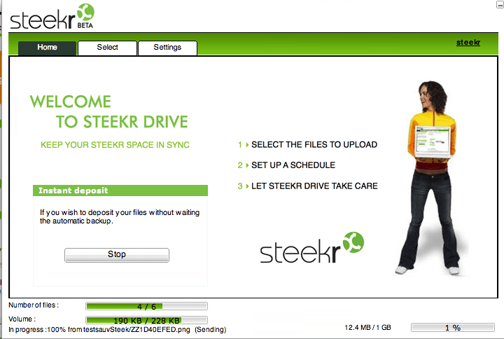 SteekR est un disque dur virtuel, l’idée est donc de stocker et partager tous les fichiers que vous désirez en ligne. Une offre d’essai permet de tester gratuitement le service en offrant 1 Go d’espace de stockage.