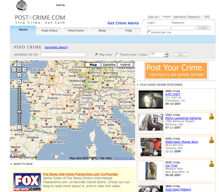 PostAcrime est typiquement une idée bien américaine qui me laisse un peu dubitatif. Le principe faire un rapport sur les crimes commis en bas de chez soi et si possible y ajouter des photos et des vidéos. Côté réalisation, c’est correct, un mashup google maps, une légère couche de social network.