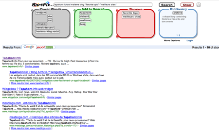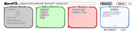 SortFix est un moteur de recherches qui s’appuie sur les résultats de Google, Yahoo! et Moz pour y ajouter une interface originale basée sur le glisser/déposer (drag n’ drop).