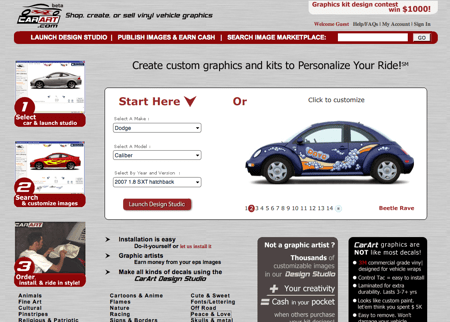 CarArt est aussi un LaFraise pour voitures, en effet les graphistes de tous horizons peuvent se rendre sur le site et proposer leurs créations, dès qu’un client les achète ils sont rémunérés. Le site propose même des concours pour les designers qui peuvent encaisser 1000$ en cas de victoire.