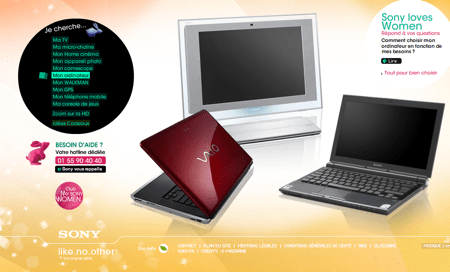 Sony a compris depuis un moment que le design et l’électronique sont 2 concepts qui se marient bien, et Alex hier a relayé la sortie de Sony love women un site dédié ? la marque et aux filles. On y trouve les produits les plus girly de la marque dans un habillage qui plaira ? certaines d’entre elles : des couleurs, des petits lapins et surtout des produits tout en rondeur et couleur.