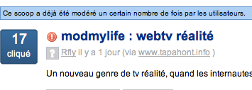 Y’a certains utilisateurs bizarres de scoopéo, qui se font leurs propres regles en dehors des règles de scoopéo, comme moderer tous les utilisateurs qui font la promotion de leurs articles pfffff… n’importe quoi. C’est fou! mais c’est comme ça 😉 P.S: Utilisateur de scoopéo pro-tapahont 😉