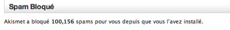 Askimet est l’outil antispam de commentaires qui est intégré ? WordPress et il fait un boulot de dingue. La nuit dernière c’est donc la barrière psychologique de 100 000 spams effacés qui a été franchie.