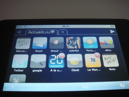 Arf, je suis le 21 eme :Os… une invite qd mm ? J’ai eu l’idée de dev un webwag like et je suis resté bloqué sur commen peronnaliser les icones avec les logo des sites…puis j’ai entendu parler de Webwag ! ça a l’air bien fait et correspond ? ce que je voulais, une belle page de démarage perso sur mon mobile (htc touch) ? tester donc