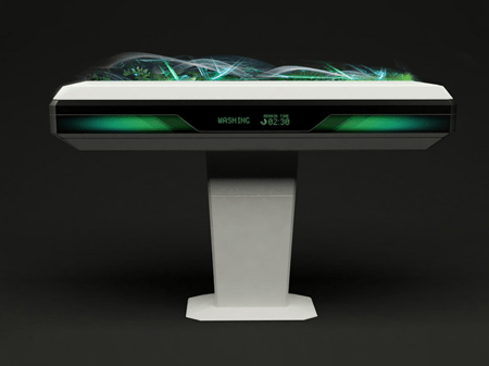 Ca ? l’air pourtant simple : De ce que j’en vois, on a des tables de cuissons ? induction ? gauche, un petit « potager » au dessus, et un évier ? droite. Le tout peut servir aussi de machine ? laver une fois le couvercle (potager) refermé. (me semble que l’auteur veut aussi nous montrer que les vapeurs d’eau permettraient de mouiller la terre du potager…)