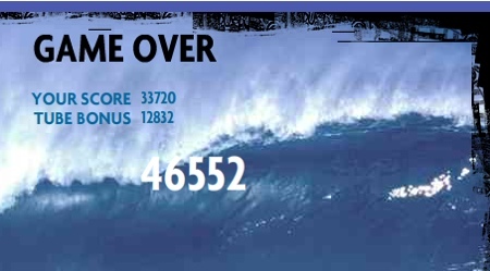 En effet, il faut contrôler votre Cédric* sur une vague pendant 30s en essayant de faire le meilleur score sans tomber ni se faire manger par les requins.