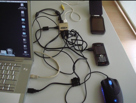 Il y a des alternative sans-fil: -Pour la souris et le Blackberry aussi: la dent bleu, mais pas les deux en même temps hélas. -Pour l’Ethernet: le Wi-Fi. Mais pour l’iPod… nous restons ? la grâce d’une mise ? jour Apple…!