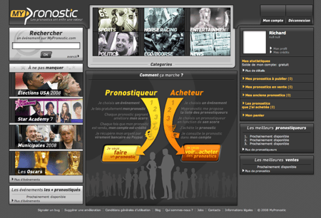 Il y a ensuite un niveau plus orienté « expertise » si on prend l’exemple d’un spécialiste de la bourse ou d’un sport qui pronostique très souvent les bons résultats, le site peut alors proposer la vente de cet avis en partageant bien sûr les gains avec son auteur. C’est ce second aspect qui est la base du business model de MyPronostic, comme je l’indiquais plus haut cela permet au site de rester complètement légal et d’être complémentaire de l’offre déj? largement disponible sur le web.