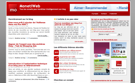 Monetiweb est un nouveau blog en ligne depuis lundi ? l’initiative de mon colloc virtuel Fred aka Aysoon épaulé par Jean François -network- Ruiz. L’objectif de ce nouveau blog est de présenter les moyens de monétiser un blog.