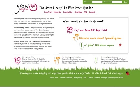 Le soir je me connecte et je tombe sur GrowVeg.com. Le site propose de gérer votre potager en ligne, tout est en drag n’drop, vous ajouter les légumes, le site vous donne des conseils pour mieux vivre avec vos légumes.