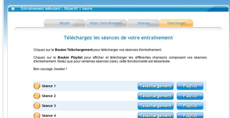 Une fois inscris donc, et rassuré par les conditions de création des entrainements, vous pouvez télécharger des fichiers au formats mp3 composé d’un programme et de musique.