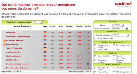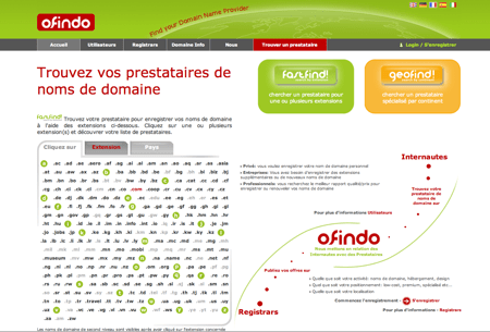 Ofindo vous propose de trouver facilement un prestataires de noms de domaine au moyen de 3 outils Fastfind, Optifind et geofind.
